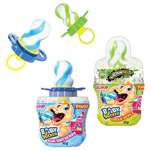 Sudedamosios dalys: ledinukas: cukrus,gliukozės sirupas,kvapiosios medžiagos,dažikliai(E162,E133,E100). Milteliai: dekstrozė,cukrus,gliukozės sirupas,citrinų rūgštis(E330),obuolių rūgštis(E296),kvapiosios medžiagos,dažikliai(E162,E133,E100).